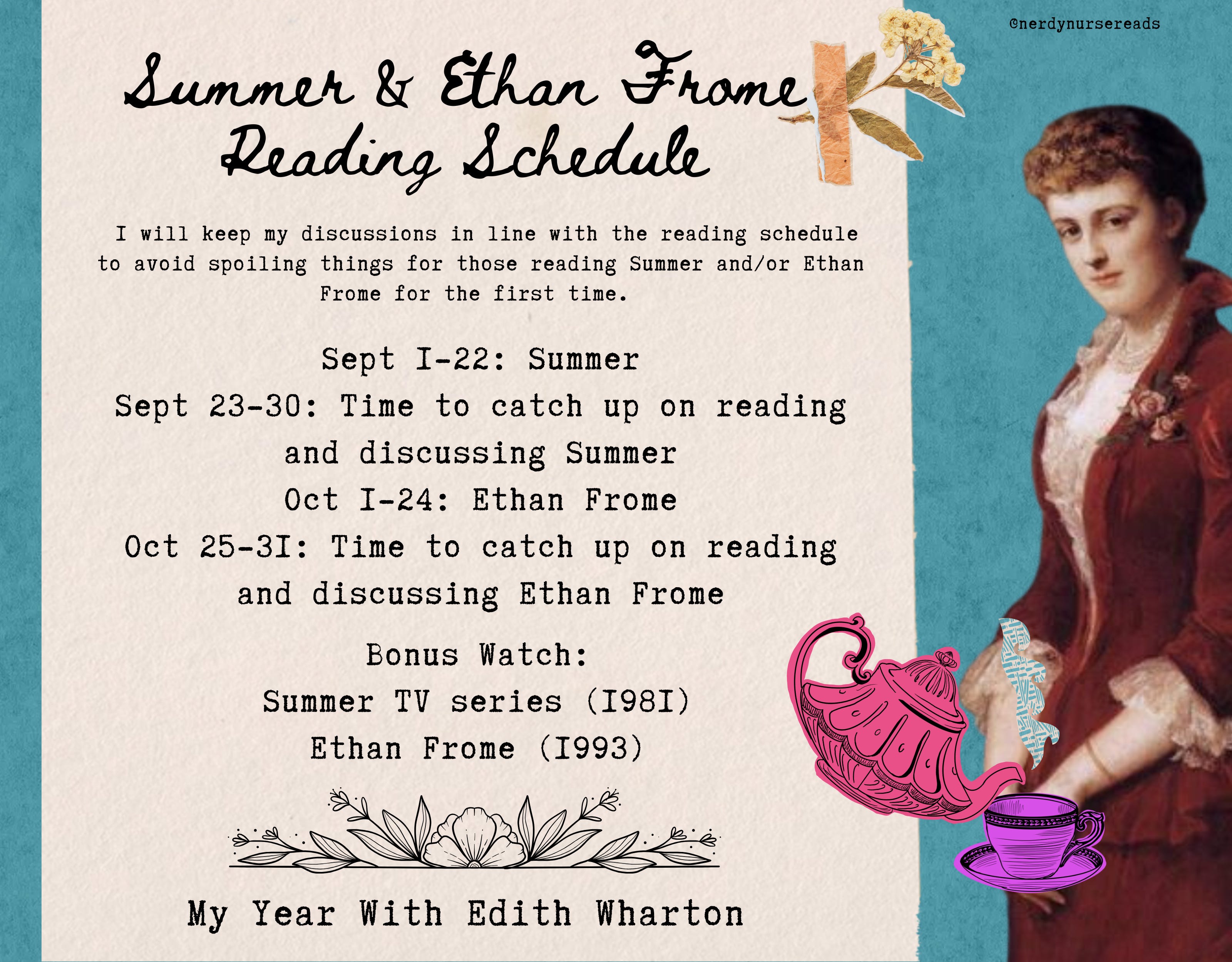 Welcome to our tandem read for the Year with Edith Wharton project! This time, we’ll be reading and comparing two of Wharton’s novellas. In September, we’ll bid farewell to summer with the 1917 novella Summer, and in October, we’ll prepare for winter by reading the 1911 novella Ethan Frome. These novellas may be short, but they pack an emotional punch. Both novellas explore the destructive effects of sexual awakening and desire in isolated, rural New England towns. Our protagonists are trapped by social circumstances and repressed passions, leading to tragic outcomes. Ethan Frome is often considered one of Wharton’s best works, but I believe you’ll be surprised by how good Summer is as well.